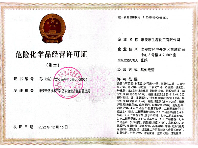 危險化學(xué)品經(jīng)營許可證